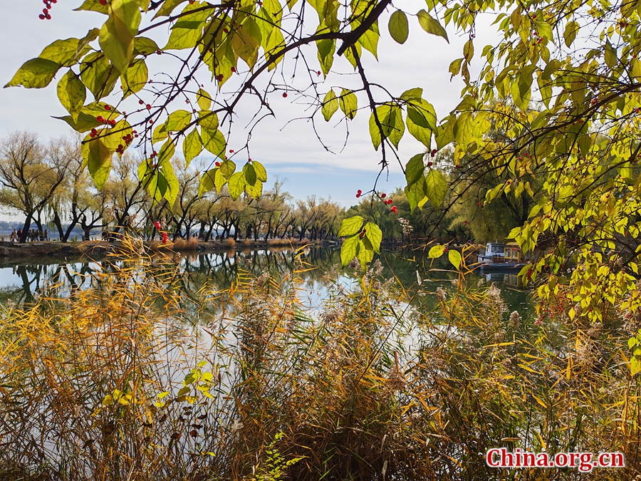 A photo taken on Nov. 10, 2025 shows the beautiful autumn scenery of the Summer Palace in Beijing. As well as history, a circuit route and natural beauty, the park offers panoramic, reflective views that visitors have come to associate with imperial gardens. The area remains a major attraction within Beijing's historic sites and water gardens. [Photo by Lin Liyao/China.org.cn]