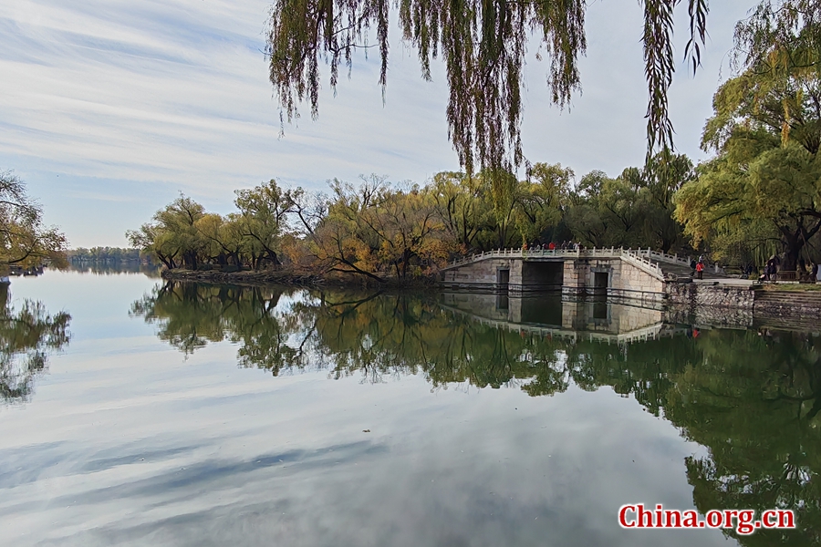 A photo taken on Nov. 10, 2025 shows the beautiful autumn scenery of the Summer Palace in Beijing. As well as history, a circuit route and natural beauty, the park offers panoramic, reflective views that visitors have come to associate with imperial gardens. The area remains a major attraction within Beijing's historic sites and water gardens. [Photo by Lin Liyao/China.org.cn]
