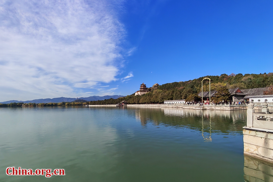 This photo taken on Nov. 10, 2025 shows the beautiful autumn scenery of the Summer Palace in Beijing. It is the largest and best-preserved royal garden across the country. Covering an area of 2.97 square kilometers, the park envelops Longevity Hill and Kunming Lake, with halls, towers, galleries, pavilions, bridges and islands scattered inside. It blends the garden style and architecture of southern China with northern China's natural landscapes. [Photo by Lin Liyao/China.org.cn]