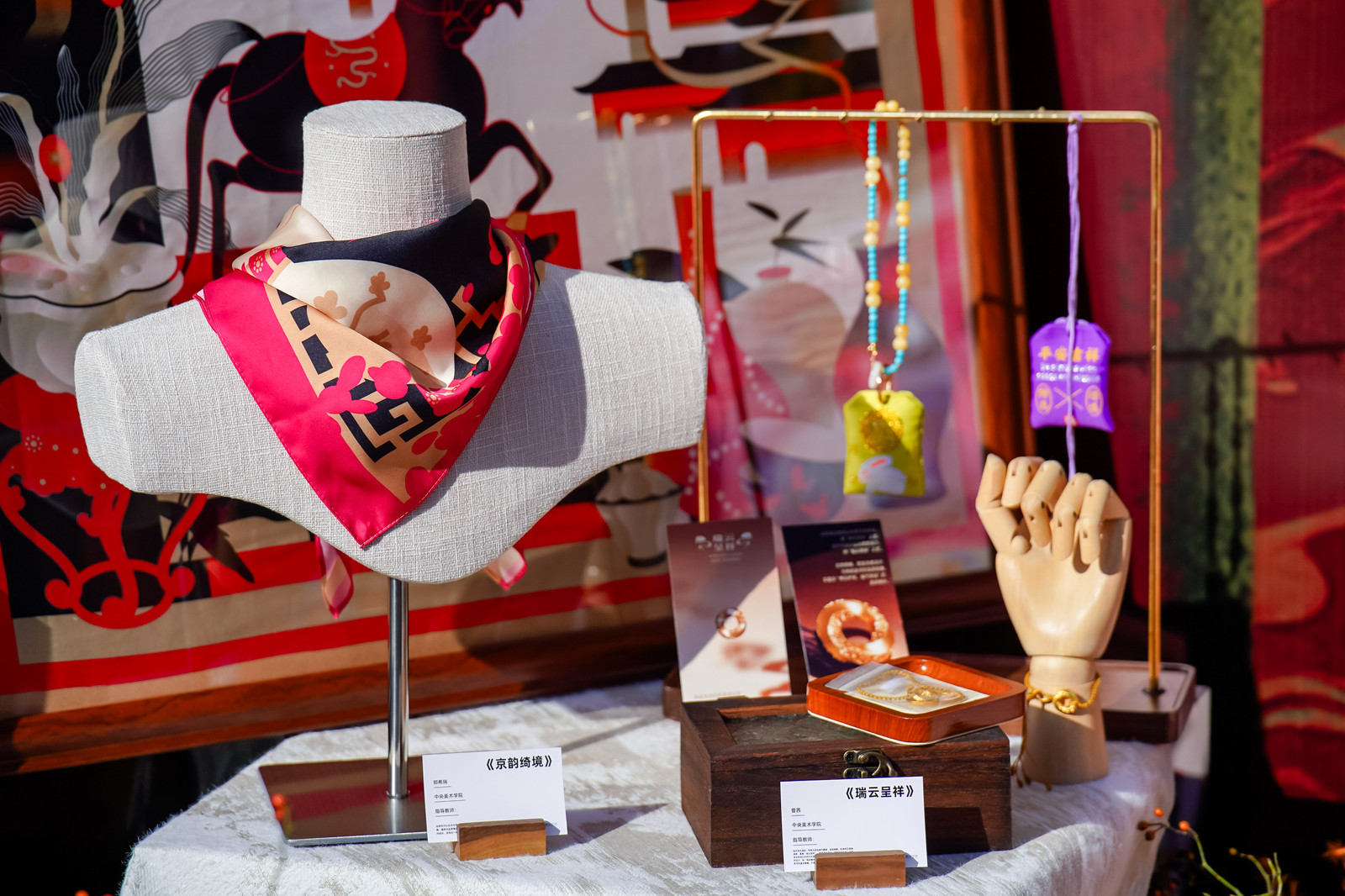Cultural and creative products are showcased at the award ceremony for the 2024-2025 Perfect World Campus Art Design Award in Beijing, Nov. 10, 2025. [Photo courtesy of Perfect World]
