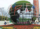| A globe with the "APEC" sign is placed on a flower bed at the new Xujiahui Park in Shanghai. The city gets ready for the upcoming Asia-Pacific Economic Cooperation summit next week.