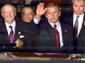 | U.S. President George W. Bush arrived in Shanghai Thursday for the APEC Economic Leaders Meeting.This is Bush's first visit to China since he entered office.(10/18/2001) |