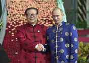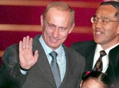 | Chinese Prsident Jiang Zemin and the Russian President Vladimir Putin in Chinese-Style Costumes.(10/21/2001) |