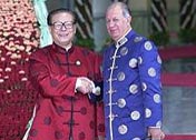 | Chinese Prsident Jiang Zemin and New Zealand Prime Minister Helen Elizabeth Clark in Chinese-Style Costumes.(10/21/2001) |