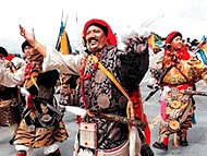 The city of Lhasa Thursday is in gala decorations with colorful flags and flowers and people in beautiful ethnic costumes thronged the Polala Square holding bunches of flowers and "hada", a local ceremonial silk scarf regarded as a token of respect.