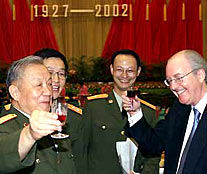 Speaking at the reception, Defense Minister Chi Haotian described the PLA as "a Great Wall of steel that is forever loyal to the Party, the motherland, the people and socialism."