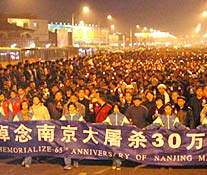 During the massacre which took place 65 years ago, more than 300,000 Chinese civilians and soldiers were slaughtered by Japanese invaders over the space of a few days.