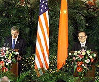 Jiang made the remarks when meeting Chinese and foreign reporters jointly with President Bush following their formal talks.