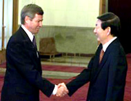 "The trade volume between China and Norway hit US$900 million last year, triple the figure a decade ago. However, it doesn't match the economic strength of the two countries," Zhu said while holding talks with visiting Norwegian Prime Minster Kjell Magne Bondevik, who arrived on Saturday for a five-day official visit.
