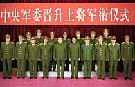 The senior officers are Qiao Qingchen, Wen Zongren, Qian Guoliang, Jiang Futang, Chen Bingde, Liang Guanglie, and Liu Shutian, who come from the Air Force of Chinese People's Liberation Army (PLA), the PLA Academy of Military Sciences, Military Area Commands in Shenyang, Jinan, Nanjing and Guangzhou, respectively.