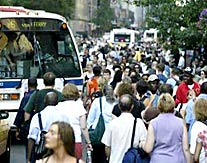 Following the massive power cut in New York, hundreds of thousands of people poured onto the streets as offices and buildings were emptied, witnesses said.