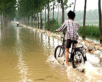 Some 1.35 million people are keeping watch along the Huaihe River and Hongze Lake, including 816,000 in Anhui Province and 529,000 in neighboring Jiangsu Province.