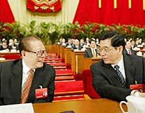 Vice chairpersons of the 10th NPC Standing Committee: Wang Zhaoguo, Li Tieying, Ismail Amet, He Luli (f.), Ding Shisun, Cheng Siwei, Xu Jialu, Jiang Zhenghua, Gu Xiulian (f.), Raidi, Sheng Huaren, Lu Yongxiang, Uyunqimg (f.), Han Qide, Fu Tieshan