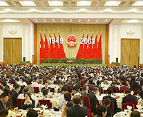 China's top leaders Hu Jintao, Wu Bangguo, Jia Qinglin, Zeng Qinghong, Huang Ju, Wu Guanzheng, Li Changchun and Luo Gan attended the reception, along with more than 1,000 people from all walks of life, representatives of Hong Kong, Macao and Taiwan compatriots, as well as foreign guests including those from the diplomatic circles.