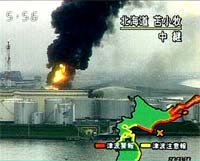 Television pictures showed video of a fire and smoke billowing near an Idemitsu Kosan Co oil storage facility at a refinery in Tomakomai, a coastal city in southern Hokkaido.