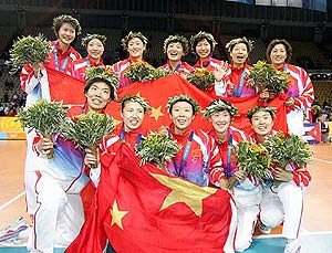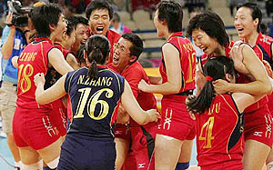 Russia made their last try at 11-12, but China started to gain the ascendancy, Yang Hao's consecutive points gave them the set. China eventually sealed the match with a Zhang Yuehong's excellent spike to fantastic scenes of jubilation.
