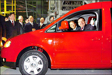 The German chancellor, Gerhard Schroeder, presided at the inauguration of FAW-Volkswagen's 2nd automobile factory on Tuesday. He was accompanied to the event in Changchun, in northeast China's Jilin Province, by Vice Premier Zeng Peiyan.