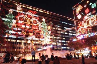 Colorful lights along major streets and buildings, beautiful Christmas trees in parks and big shopping malls and big signs of "Sales" on the windows of big boutiques ... everything is indicating Christmas is coming. Having increased pays or bonus at hands, many young people had already rushed to shops and bazaars at the Times Square, SOGO, Harbor City and many other shopping centers in the afternoon to buy fashions, jewelry pieces, watches and other things as gifts for family members, friends or just for pleasing themselves. So far about 300,000 people are gathering at Tsim Sha Tsui, one of most popular tourism spot in Hong Kong, and the police are expecting a record turnout of more than 400,000 people this night. Crowd control measures are being implemented in Tsim Sha Tsui. Street party and countdown for welcoming the Christmas has already been an attraction for young people. Trains and buses services have been increased and extended for the holiday. Hong Kong residents and tourists have also gone to the Statue Square in the Central District to see Christmas performances, street dances and Karaok contests. Over 330,000 people put their wishes on the dozens of "whites trees" erected at the square, wishing good health, good prospects and successes in their carrier. Companies for lighting decorations on buildings said that their business has increased by at least 5 percent this year, thanks to the much improved economic growth here. Hong Kong Retail Management Association expected that retail consumption volume is expected to rise about 5 percent during the Christmas holidays in Hong Kong. The association believed with the opening of Disney Land Park in Hong Kong next year, Hong Kong's retail consumption volume is expected to rise 9 percent next year. Many shopping centers said that the number of their customers raised about 20 percent these days and Christmas trees, gifts, decorations and dried flowers have been better sold this year. Lisa Chen from a publishing house said she has spent about 1,000 HK dollars (US$128.20) for Christmas gifts. She'd like to share her happiness with her friends for her increased salaries. Hugo Xu, who just renewed his annual contract with a 5 percent income hike with his boss Friday, went a bazaar to Times Square, bought a pair of Ecco-brand casual shoes and a watch for his newlywed wife, who came to visit him from Shanghai. Going to cinemas and theaters are also choices of many young people. In the cinema of the Pacific Palace and outside the Elizabeth Stadium, people lined up in long queues in the evening, waiting to watch films and performances of Hong Kong pop singers. "People, people everywhere, and nowhere to hide," if one does not believe, just go out to the downtown areas to observe what is a holiday in Hong Kong.