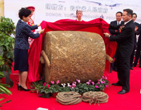 When delegates from China and the US pulled the red silk cover from the stone roller, many of the guests' eyes filled with tears -- the old farmers, the veteran pilots and even the young people who know World War II only from their history books. All of them heard the stone roller's story with their hearts.