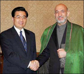 Hu told Karzai that he was shocked and deeply saddened by the terrorist attack on Chinese workers in Afghanistan. China thinks what the Afghan government has done so far to deal with the aftermath of the attack was positive, but hopes the Afghan government would do more, the Chinese president added.