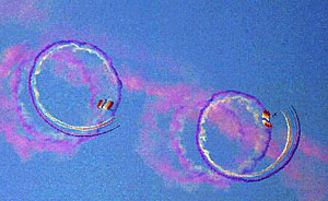 French Air Force's famous aerobatics team, "Patrouille de France" displayed its aerial charm in Beijing Monday amid French President Jacques Chirac's state visit to China.