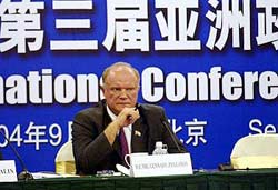 Gennady Zyuganov, the leader of the Russian Communist Party, said that Russia and some other parts of the Commonwealth of Independent States, the land bridge linking Europe and Asia, have become a weak point in the Euro-Asian security system. He said the reconstruction of an integrated Russia is vital to the stability of the Eurasian continent.