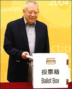 Hong Kong Chief Executive Tung Chee Hwa came to the Hong Kong Park Sports Center to cast his vote for the third term Legislative Council (LegCo) election at 9:00 AM Sunday.