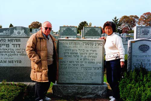 Epstein and his wife Huang Wanbi at his parents' tomb in the USA (1992).