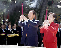 Soong led his PFP delegation to pay homage to the mausoleum of Huangdi, more than 100 kilometers away from Xi'an, capital of northwest China's Shaanxi Province, the first leg of Soong's nine-day mainland visit.