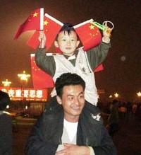 Hundreds of thousands of Beijing citizens swarmed to Tiananmen Square to celebrate in a burst of patriotic fervour similar to that in July when the International Olympic Committee voted to hand the Olympics to the Chinese capital.
