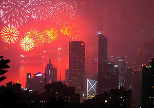 Sponsored by the Chinese General Chamber of Commerce, the fireworks display attracted at least 430,000 Hong Kong residents and tourists.