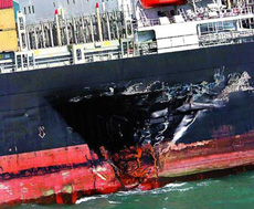A fuel storehouse of the 300-metre-long, 75,500-ton Mscilona broke and started leaking heavy fuel oil. The 182-metre-long, 21,000-ton Hvundai Advance was also damaged.
