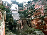 The head of the Leshan Buddha is 14.7 meters in length and 10 meters across. It is covered with 1,021 curls, each of which is large enough to support a big round table.