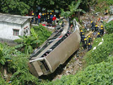 A northbound double-decker bus careered off the Tuen Mun Road near Ting Kau Bridge at about 6:30 am, smashed through safety barriers and plunged 35 metres into an adjacent hill slope.