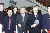 The scene at the reception was quite memorial: the venue, the No.6 building of the state guesthouse, is where Dr. Kissinger took residence during his first visit 30 years ago; present at the occasion were many veteran diplomats and sportsmen who took part in the "ping-pong diplomacy"; as part of the celebration, a ping-pong game was held between young Chinese and US students.