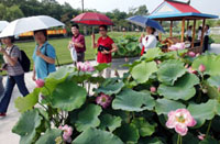 Tourists view lotus in Nandaihe near Qinhuangdao, a seaside tourist resort in north China's Hebei Province July 23, 2003.