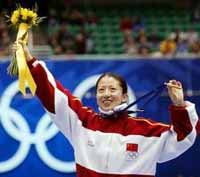 World Champion Yang Yang (A) collected China's second gold medal of the Winter Olympics in Salt Lake City Saturday -- both won by her -- when she skated to victory in the women's 1000m short track speed skating final.