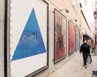 "The high ceilings enabled me to work on a larger scale," comments Ding Yi, one of the first artists to adapt warehouse space along the creek into a studio. "Somehow, being able to paint on a ladder is more inspiring. The spacious, inelegant warehouses are well suited for creative artists." Ding's monthly rent for his 400-square meter space is about 2,500 yuan (US$301) -- eminently reasonable by Shanghai standards.