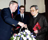 Last month on his 80th birthday, Cao Ying received flowers from Andrey V. Krivtsov, consul general of Russia in Shanghai, as well as a commendation from Igor A. Rogatchev, ambassador of Russia in China.
