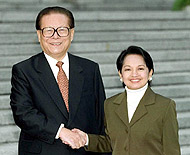 | China hopes to develop a long-term stable friendship with the Philippines on the basis of good-neighborly cooperation as well as mutual trust and mutual benefit, Chinese President Jiang Zemin said Tuesday afternoon when meeting visiting Philippine President Gloria Macapagal Arroyo. |