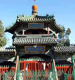 Directly inside the front gate stands a hexagonal structure known as the Moon-Watching tower. Every year at the beginning and ending of the fast serve the moon's waxing and waning so as to auspiciously fix the exact duration of the fast.