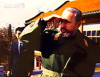 Guo Qiumin said, "For well over a decade, I've been taking pictures for visiting leaders. And there are altogether over 100 of them. I remember that day Mr Fidel Castro walked into the balcony, and because of sunshine, he raised his hand before the forehead -- at that time I clicked the shutter.