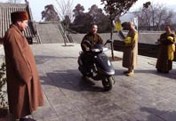 "Living conditions in the temple are comfortable enough," Yan Da says. "Too many luxuries makes it difficult to keep to Buddhist doctrine." The monks' life is not actually as rigid as might be imagined. They have television and VCDs, some monks have mobiles, and they are given several hundred yuan each month for expenses. Yan Da spends most of his money on phone bills and books. His dream is to walk from Beijing to the Wutai Mountains, a sacred Buddhist area, six hours by train from Beijing, and estimated to take about one month on foot.