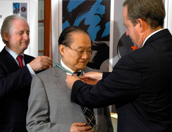 The French Minister of Culture and Communications Renaud Donnedieu de Vabres, who presented the honors at a ceremony here, awarded Louis Cha the high rank of Commandeur of the Ordre des Arts et des Lettres.
