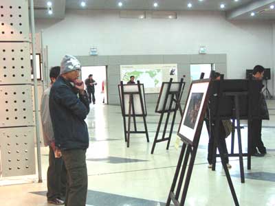 Hundreds of people visited the exhibition in opening day. Zhou's photographs line the walls of the exhibition hall, while the DV images and interview segments appear on two video monitors in the center of the room.