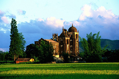 After about an hour, besides paddyfields, there began to appear groups of buildings that looked like castles, different in sizes and styles.