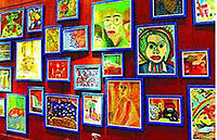 In an exhibition entitled "Flying Hearts," more than 100 children from around the country and the world are showing their most original art works of free expressions, or "scrawls," before they have been trained to copy the adult definition of art.