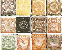 The highest-priced piece is two connected stamps named "National Land is All Red" with a face value of eight fen or 0.08 yuan and an auction base price of 270,000 yuan (US$32,500) to 280,000 yuan (US$33,750).