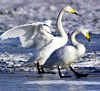Swans lark on the Wulapo reservoir in Xinjiang. The environment improvement fascinates 10 swans to spend their winter days.