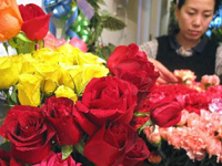 Flowers are trimmed and arranged by workers in Changchun, Jinlin Province, before the Valentine's Day.